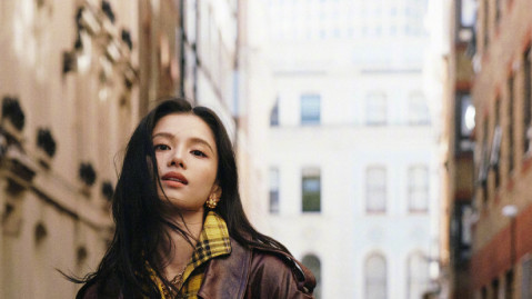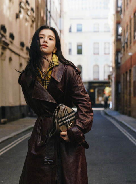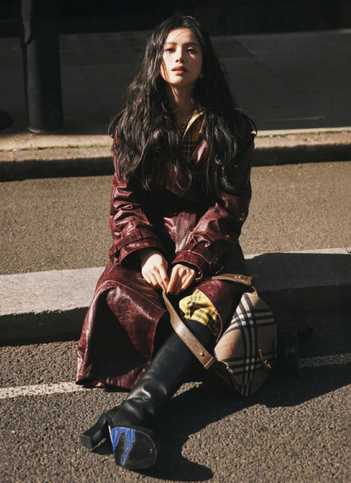 张婧仪身穿酒红色风衣搭配黄色格纹衬衫,这英伦范儿喜欢吗?