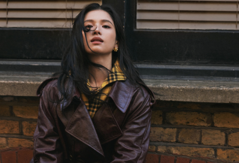 张婧仪身穿酒红色风衣搭配黄色格纹衬衫, 这英伦范儿喜欢吗?